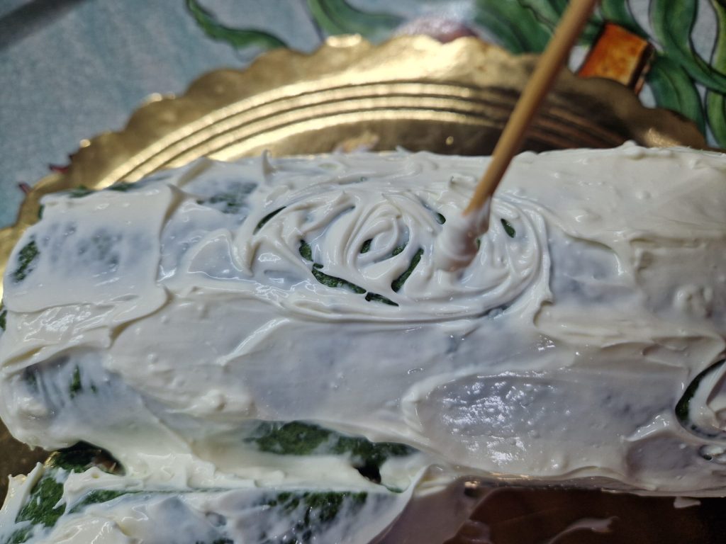• Smeer de roomkaas over de hele stronk, zelfs op onregelmatige wijze,