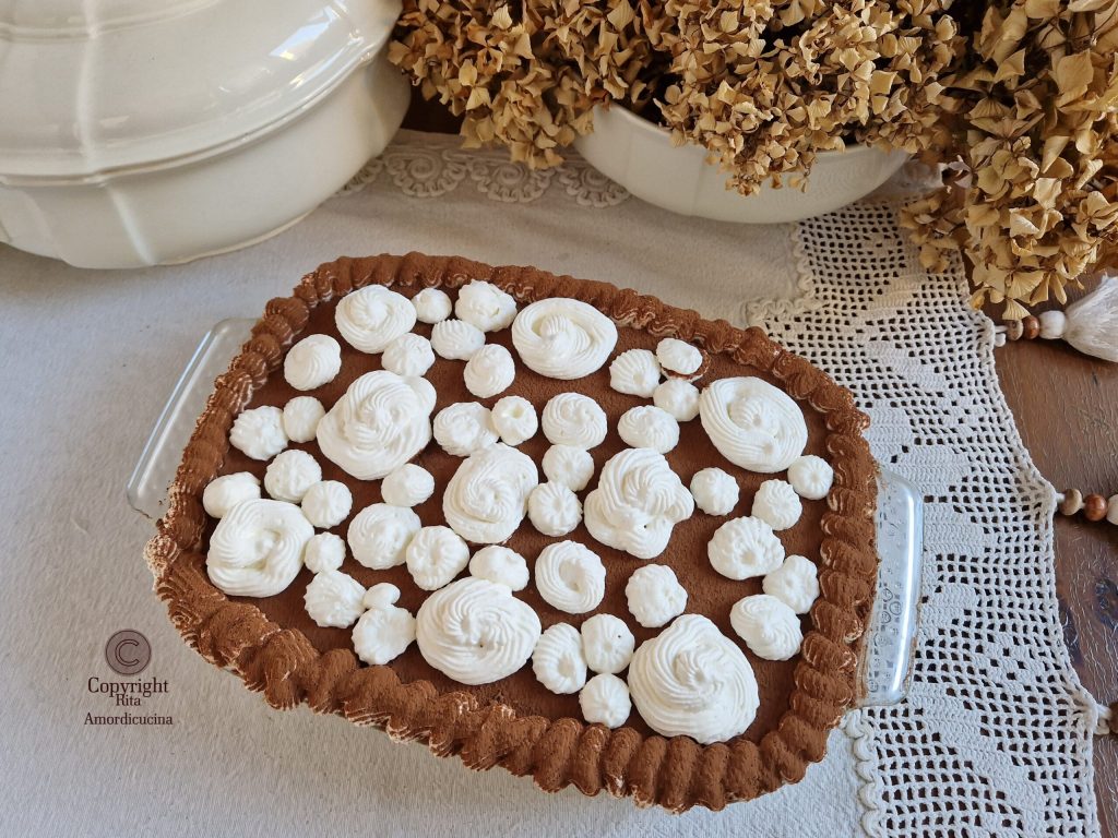 • Bestrooi vervolgens met ongezoet cacaopoeder en maak rozetten hier en daar tot de mascarpone crème helemaal op is.