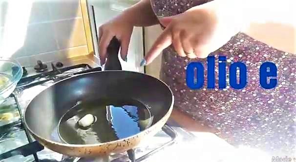Bakken in de pan: voeg een hele knoflookteen en olijfolie toe, laat het warm worden