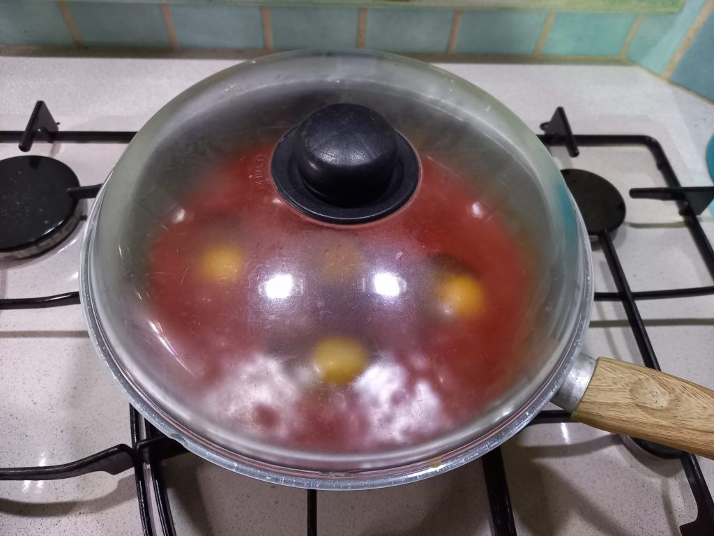Dek af met het deksel en laat ongeveer 8 minuten koken, of naar wens afhankelijk van hoe u uw ei wilt, als u het liever meer of minder gaar wilt.