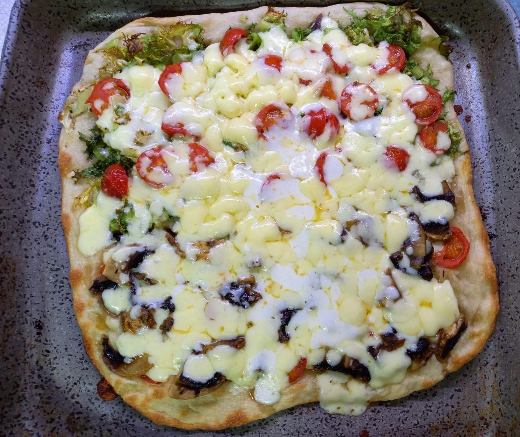 In de laatste 5 minuten voeg ik de scamorza toe en hier is het resultaat.