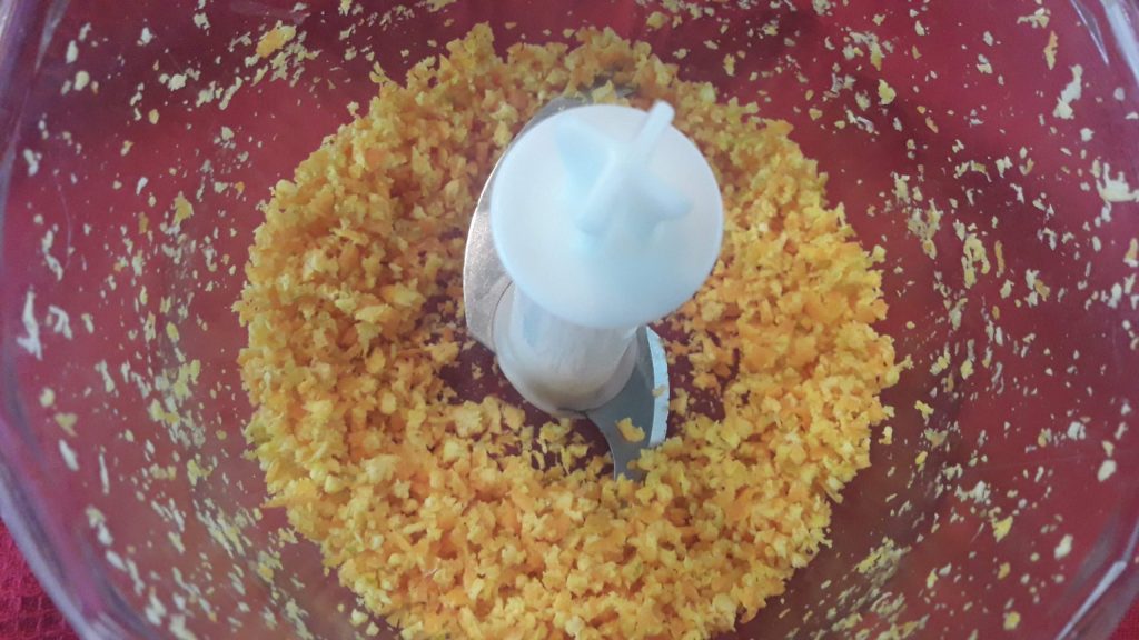 pers het uit en bewaar het sap apart, terwijl je de schil fijnhakt.