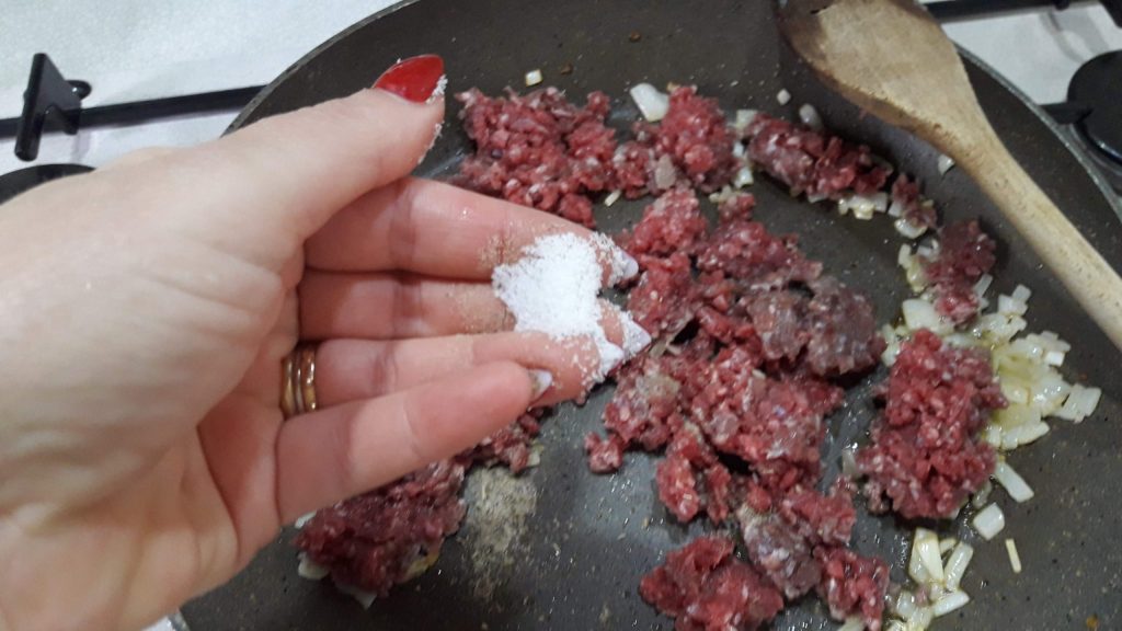 • Voeg het gehakt toe aan de pan en laat het koken tot het van kleur verandert.