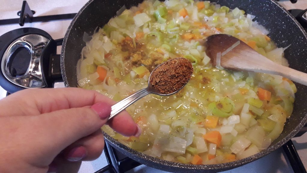Ik heb dit gerecht gemaakt op de gebruikelijke manier door groenten te combineren met koolhydraten en eiwitten, alles op smaak brengend met aroma’s en in dit geval specerijen.