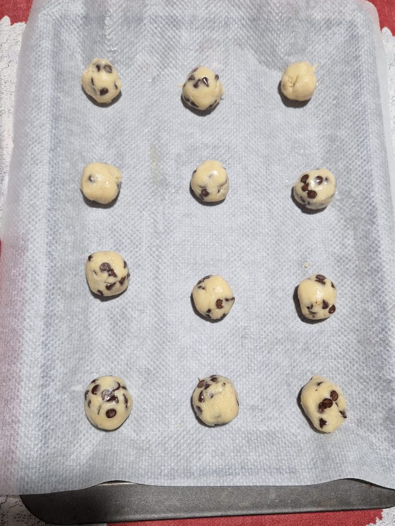 en plaats ze op een bakplaat met bakpapier eronder. Zorg ervoor dat ze goed uit elkaar liggen, anders kunnen ze aan elkaar gaan plakken tijdens het groeien.