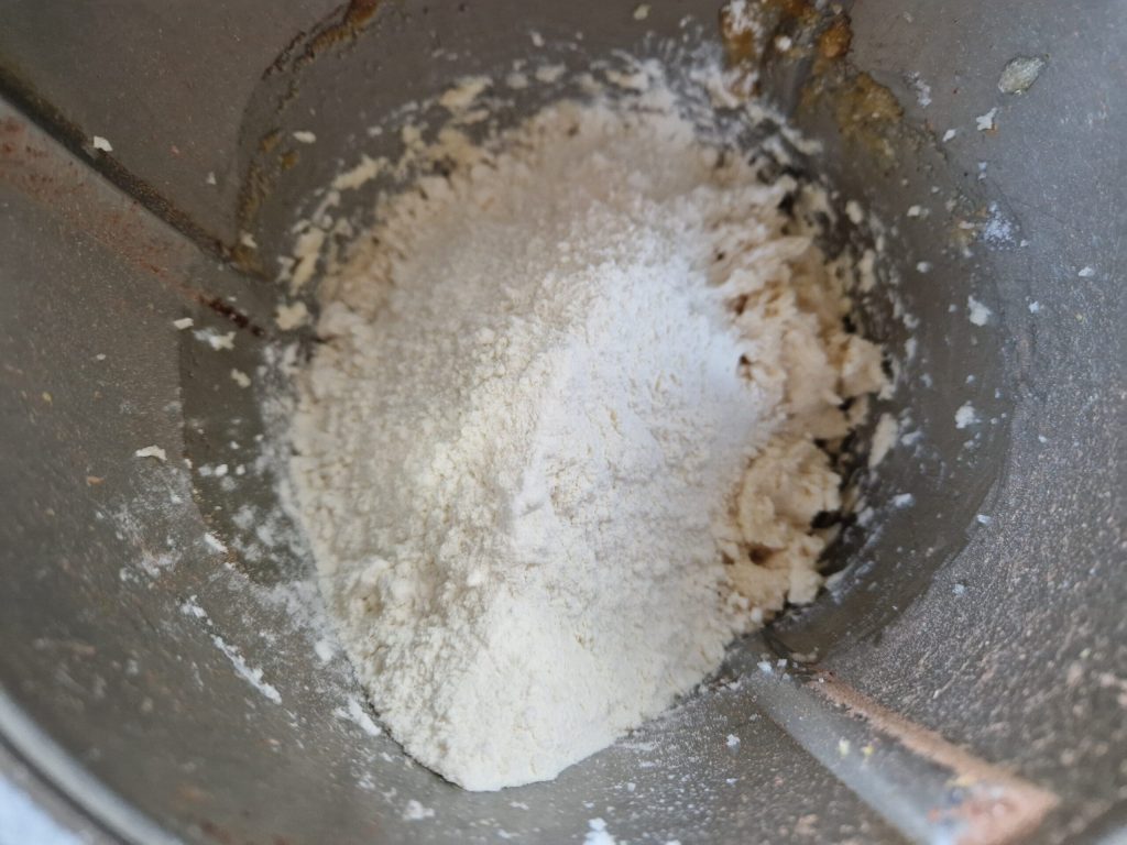 Voeg de baking soda en de gezeefde bloem geleidelijk toe, terwijl de garde in beweging blijft, of gebruik je handen als je dat verkiest.