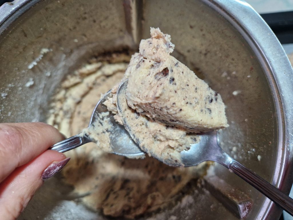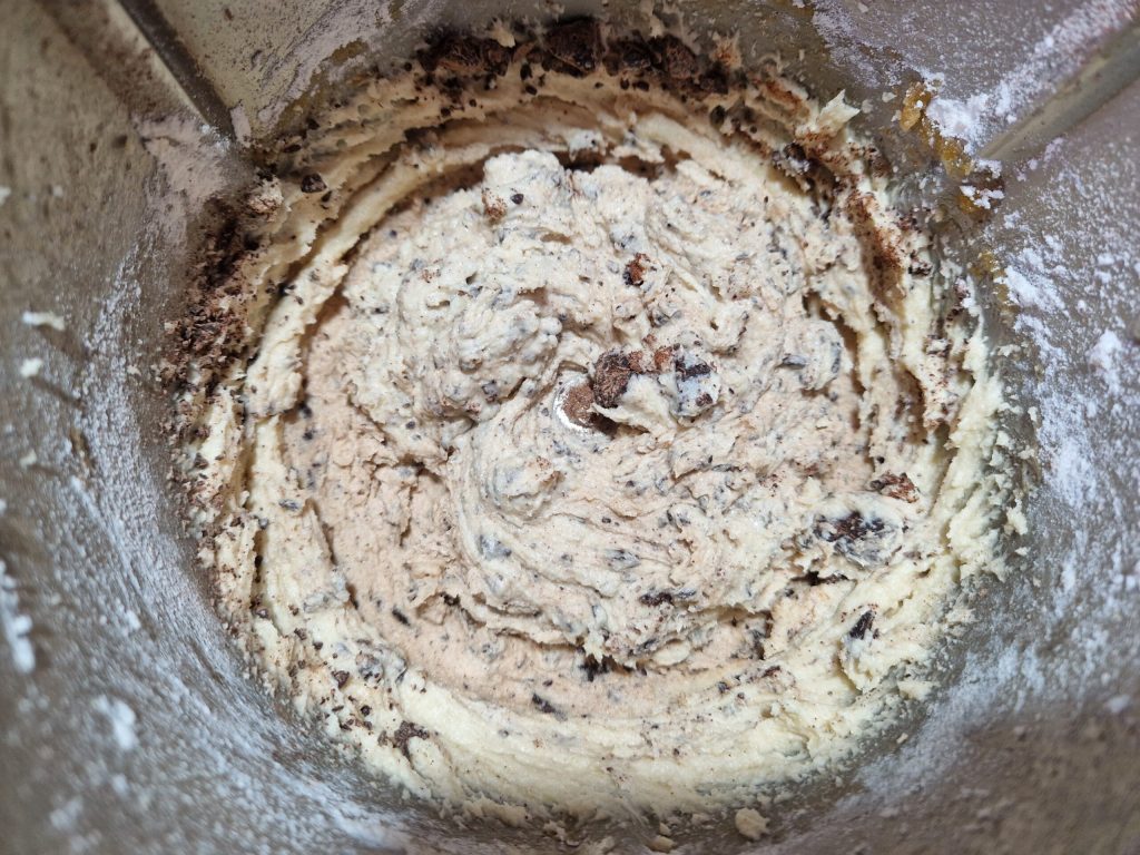 Wanneer het mengsel glad en homogeen is, voeg de chocoladestukjes toe, en meng gedurende 3 min antiklokwise vel 2.