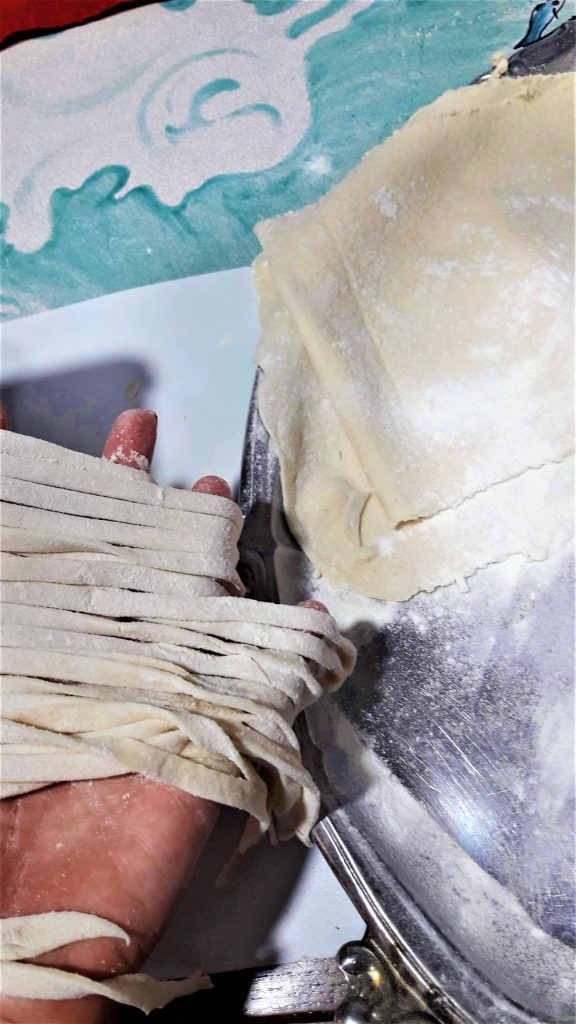 Plaats een spatscherm, zet het vuur laag en laat 1 uur koken. Intussen kun je de zelfgemaakte tagliatelle maken.