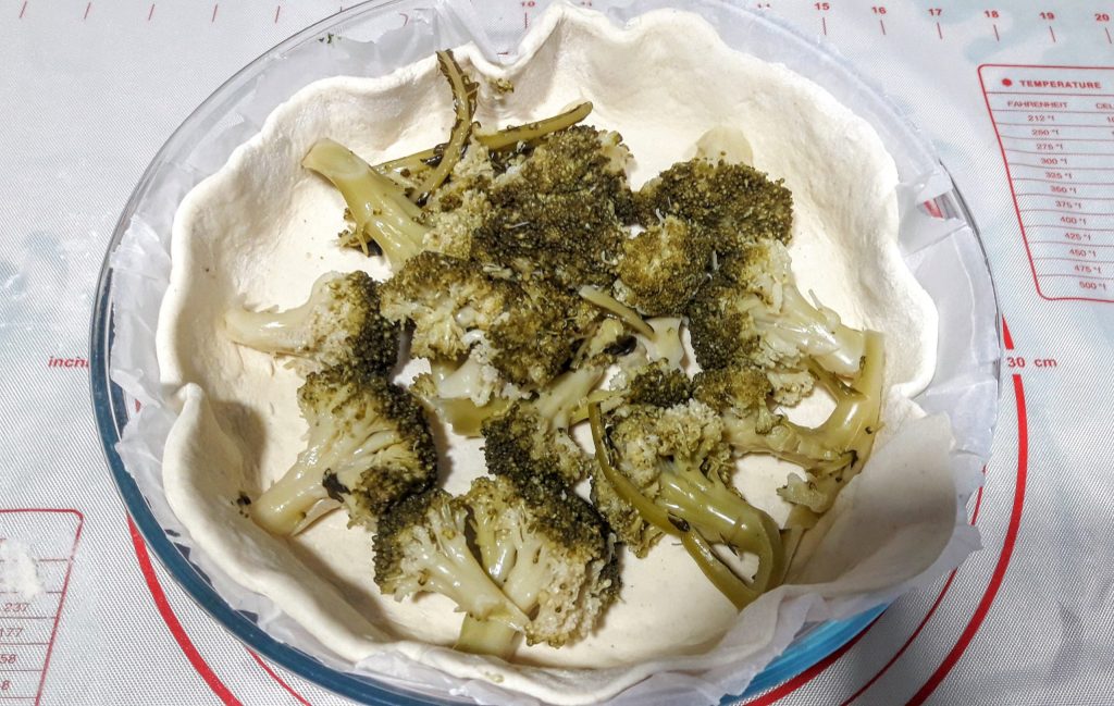 Laten we beginnen met vullen: leg eerst de broccoli,