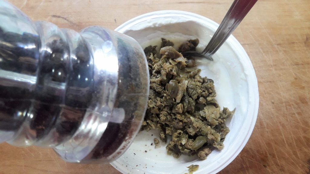 Voeg ze vervolgens toe aan de yoghurt met een beetje gemalen peper, en meng.