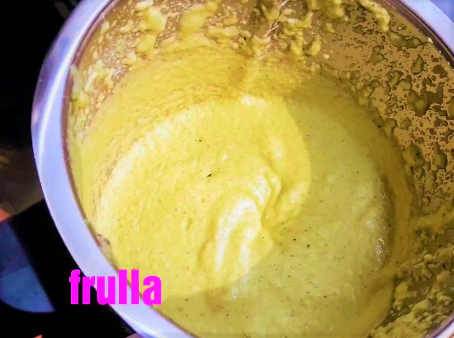 • voeg de smeerkaas toe. Meng goed met een garde tot het mengsel glad en homogeen is.
