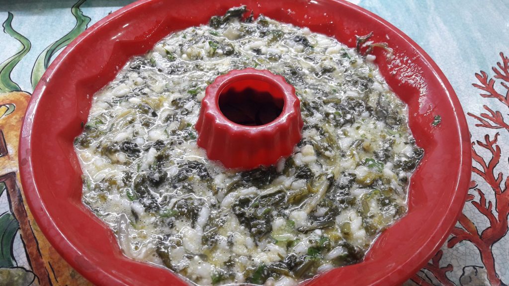 Rijst- en andijvietaart op Napolitaanse wijze.