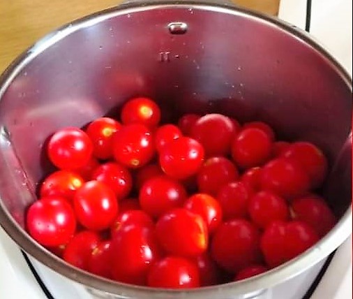 • en voeg de cherrytomaten toe. Nu kun je de pasta koken.