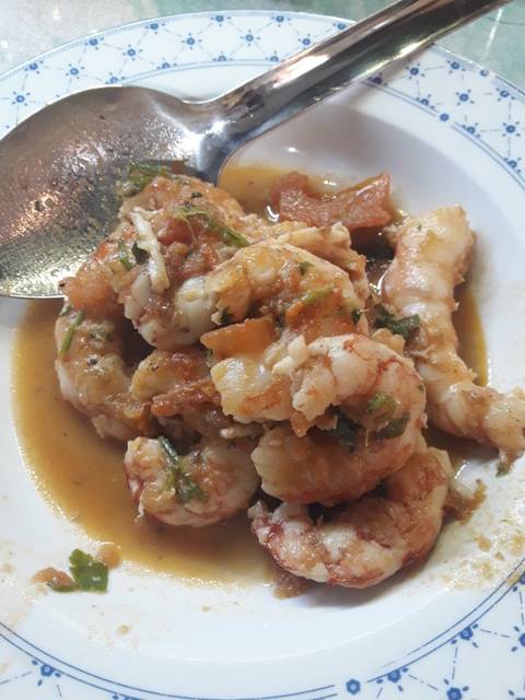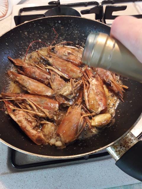 De peper en de grote garnalen die slechts 1 MINUUT moeten koken. Breng op smaak met zout. Ondertussen….