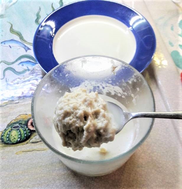 Snijd het in stukjes en doe het in een glazen kom, voeg 150 ml melk toe, dek af met plasticfolie en….