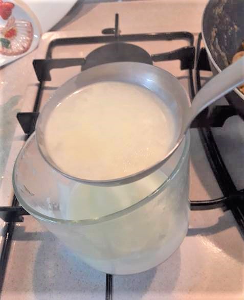 verwijder de vaste delen die zijn overgebleven van de provola, of je kunt het ook zeven met een zeef.