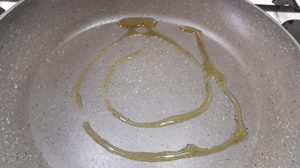 Doe een scheutje extra vierge olijfolie in een antiaanbakpan op hoog vuur, en laat goed verwarmen.