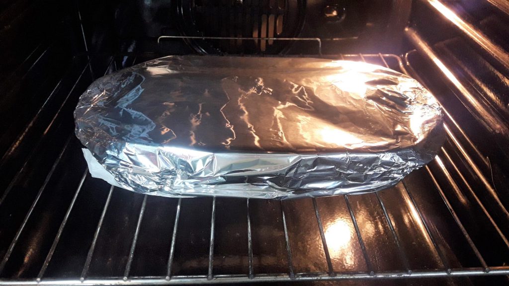 • Bak 20 minuten in de oven. Laat vervolgens 5 minuten buiten de oven rusten, nog steeds bedekt met de papieren, en je kunt ondertussen de falsomagro uitdoven en het touw losmaken.