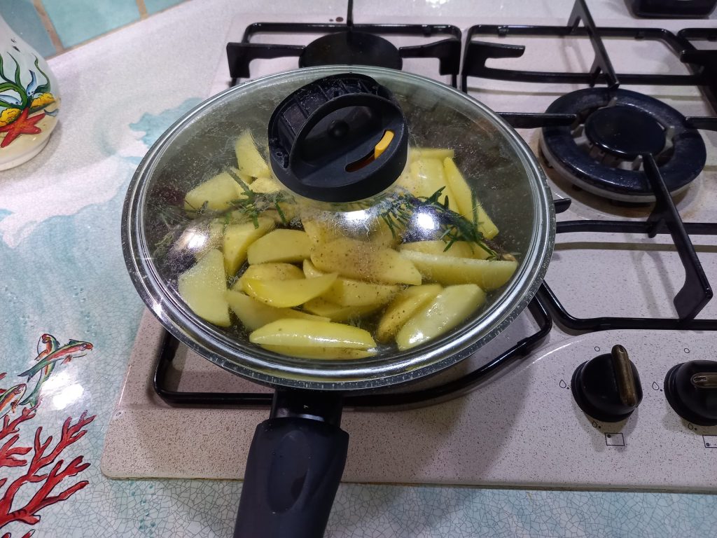 Vergeet niet de aardappelen te controleren, als ze gaar zijn, zet ze dan uit.