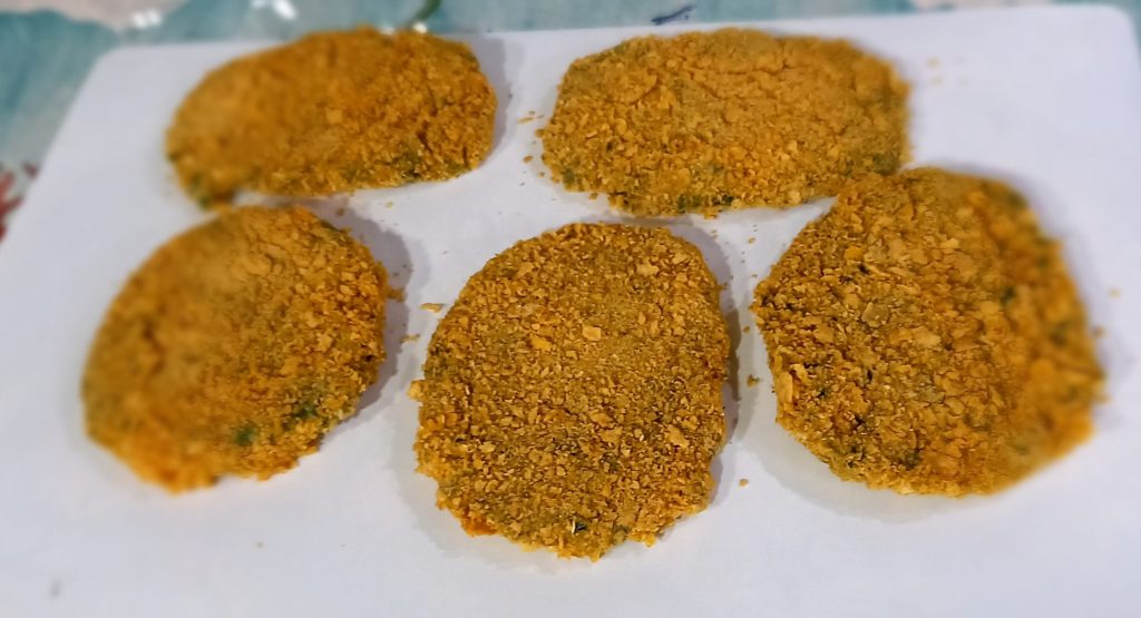 Haal ze eerst door het losgeklopte ei aan beide kanten, en dan..