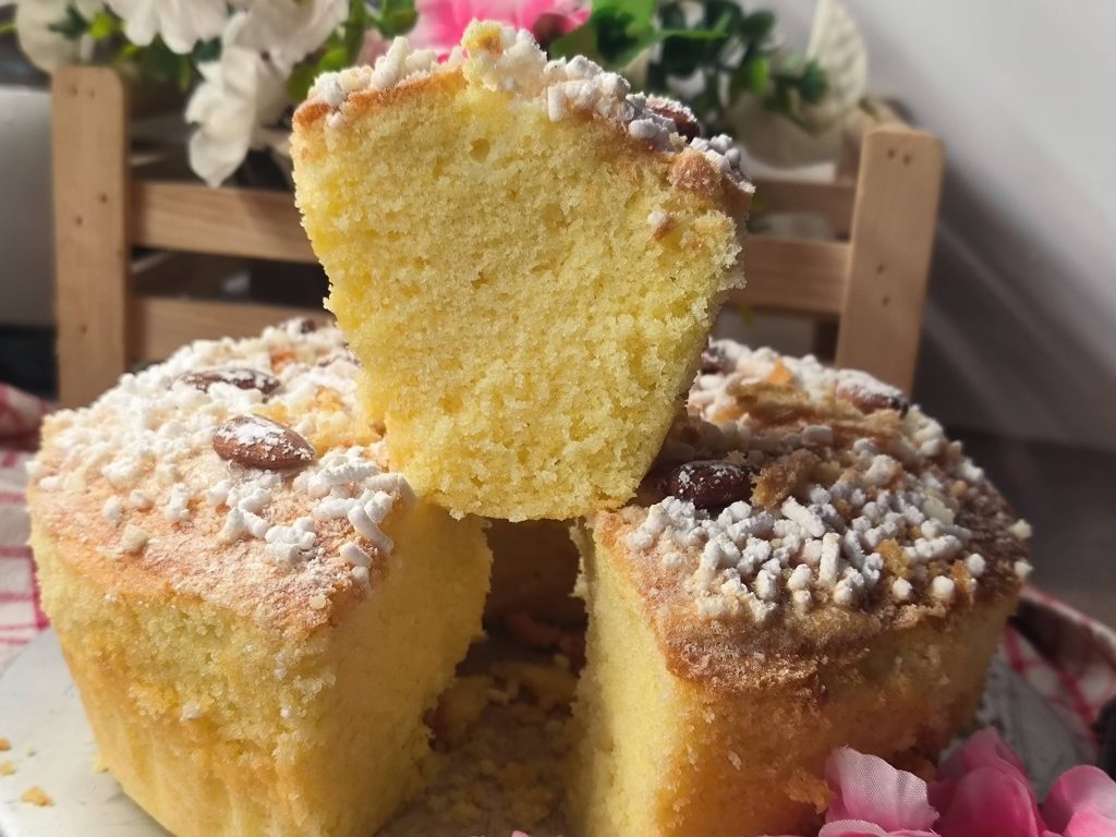 De ciambellone colomba is een zachte en geurige cake met slagroom en vanille, perfect voor de periode rond Pasen. Bedekt met de klassieke knapperige amandelglazuur die doet denken aan de traditionele colomba, is hij ideaal voor het ontbijt of als tussendoortje tijdens de feestdagen.