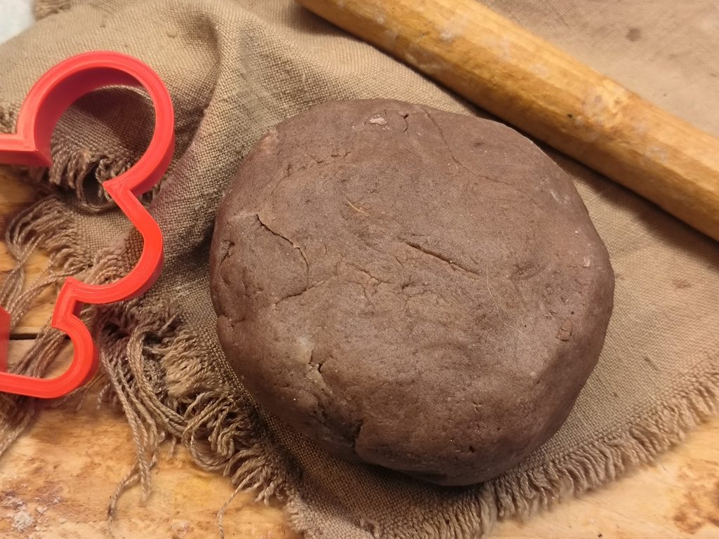 Nu de magie!! Voeg de melasse toe en mix opnieuw en je zult een kruidenaroma ruiken dat de hele keuken vult! Zodra de ingrediënten goed gemengd zijn, giet je alles op het werkblad en vorm je een mooi deeg, dek het af en laat het rusten in de koelkast.