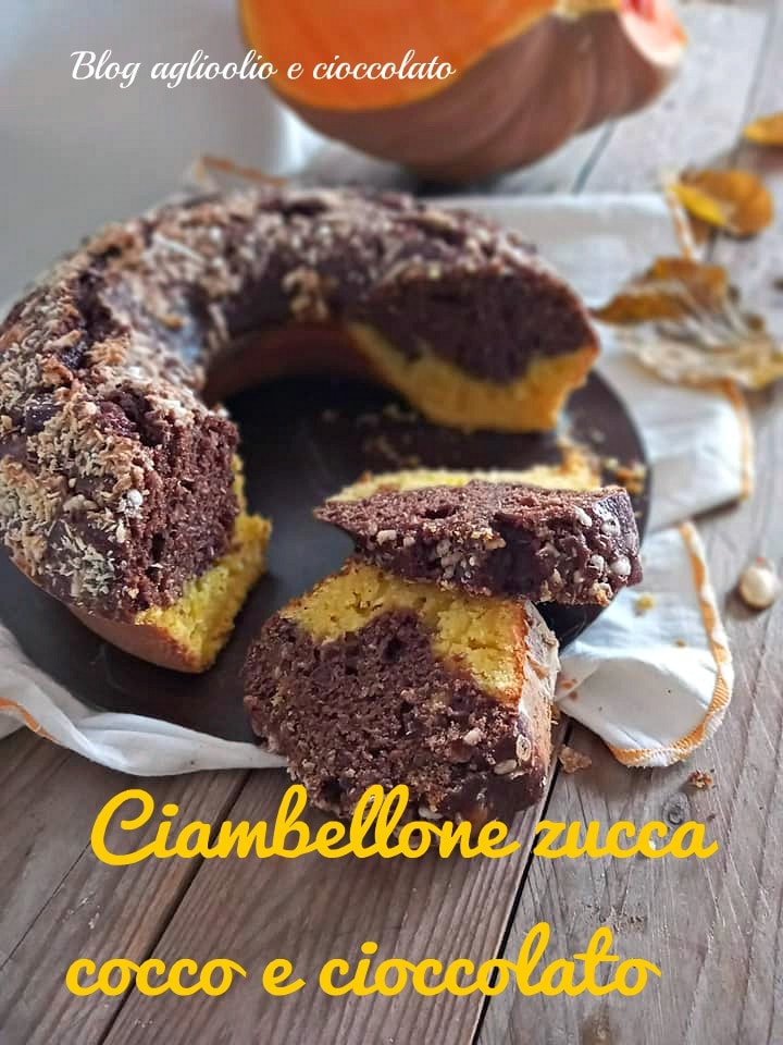 De pompoen, kokos en chocolade ringcake is een zeer zachte, heerlijke cake vol smaak en je hebt geen elektrische mixer nodig, alles wordt in de keukenmachine gemengd. Een mix van drie echt fantastische ingrediënten!! Om deze heerlijke cake op smaak te brengen, heb ik een sinaasappel gebruikt, zowel het sap als de schil. Ik ben dol op alle lekkernijen die er in deze tijd van het jaar zijn, vooral omdat je veel mooie, kleurrijke en vlezig pompoenen kunt vinden die geschikt zijn voor zowel heerlijke desserts, zoals deze ringcake, als smakelijke hartige gerechten. Mijn advies is om een mooie pompoen te kopen en deze cake te proberen; ik ben er zeker van dat je bij de eerste hap al verkocht bent. Laten we samen kijken wat we nodig hebben om de pompoen, kokos en chocolade ringcake te maken.
