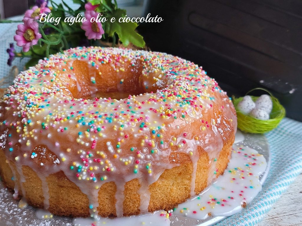 Zoals alle traditionele paasrecepten, zijn er verschillende versies, hun authentieke smaken en geuren voeren je terug in de tijd en roepen vele herinneringen op, zoals de geur van vanille in de lucht en oma met haar grote kom waarin ze eieren, suiker en bloem mengde en haar geweldige klassieke ciambellone maakte.
