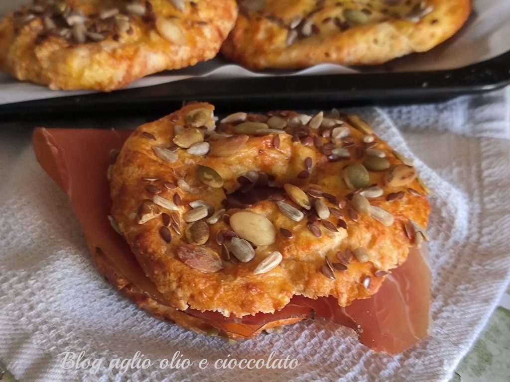 Meng in een kom alle ingrediënten behalve het ei. Vorm een deegbal en verdeel deze in vier delen en vorm vier balletjes waarin je een gat in het midden maakt zodat er donuts ontstaan. Plaats ze op de bakplaat van de airfryer, bestrijk ze met het ei en bestrooi ze met de zaden. Bak ze ongeveer 15/20 minuten op 200 graden. Laat ze afkoelen en geniet er dan van zoals je het lekker vindt.