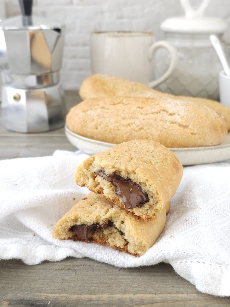 En hier zijn ze dan. De grote koek gevuld met Nutella is klaar om in melk of koffie gedoopt te worden. Ik hoop dat je van mijn laatste recept houdt, tot de volgende keer vrienden.