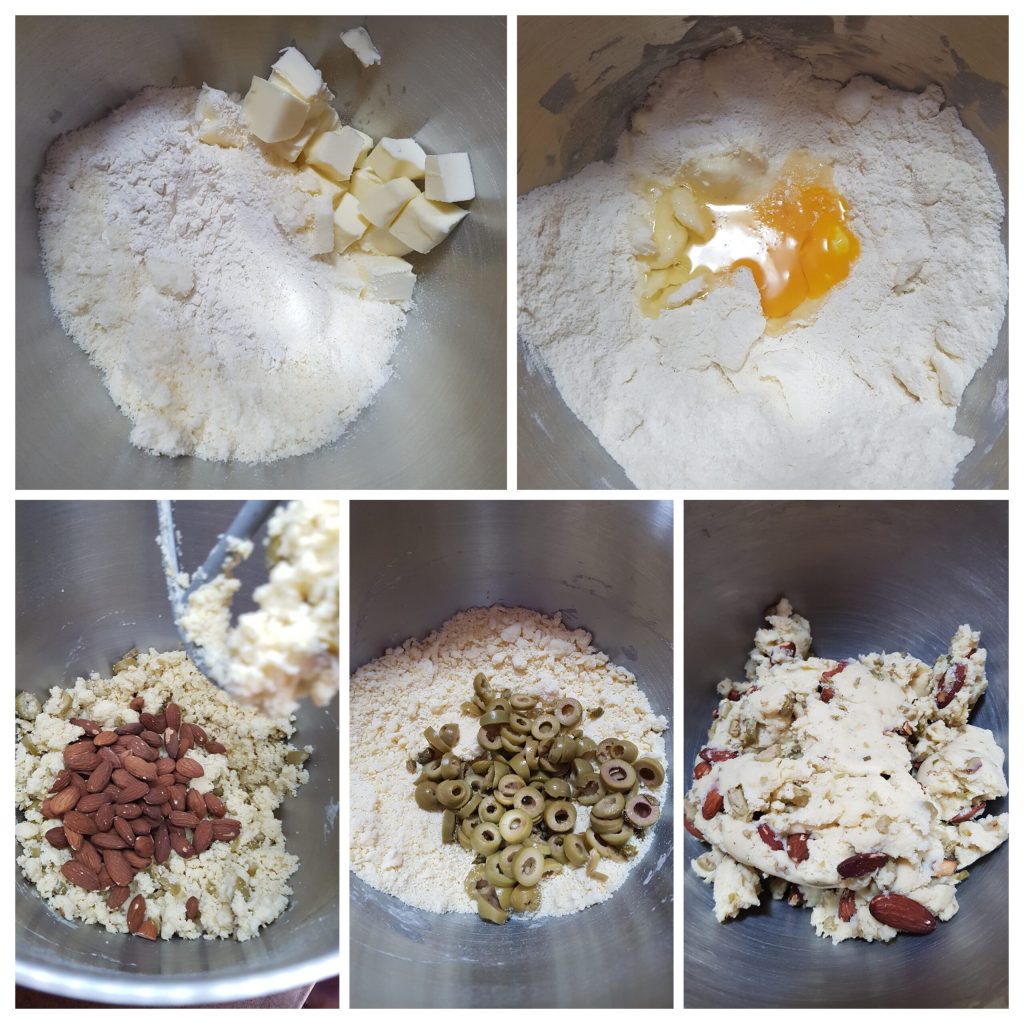 Stappen voor de hartige cantucci met olijven, kappertjes en amandelen