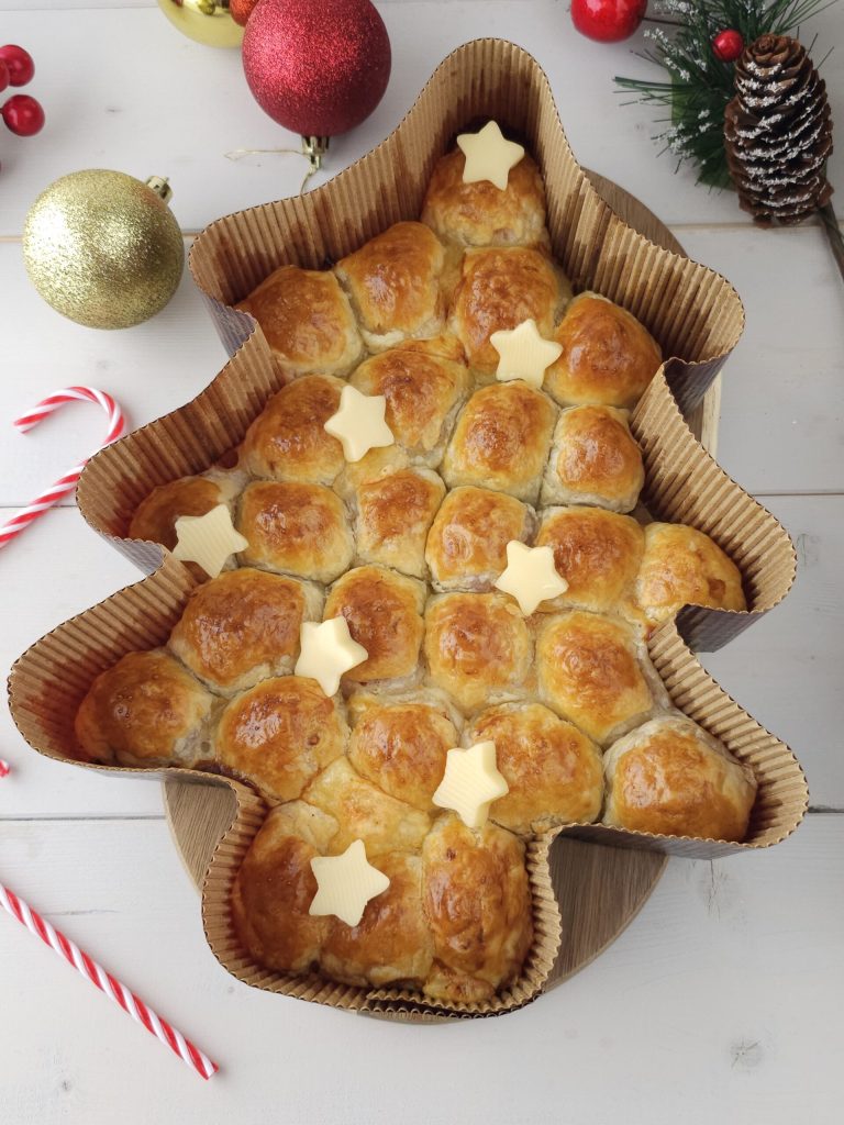 Plaats de kerstboom Danubio van bladerdeeg op een snijplank of serveerschaal, decoreer met emmentaler sterretjes en serveer. Ik hoop dat jullie mijn laatste recept lekker vinden, tot de volgende keer vrienden.