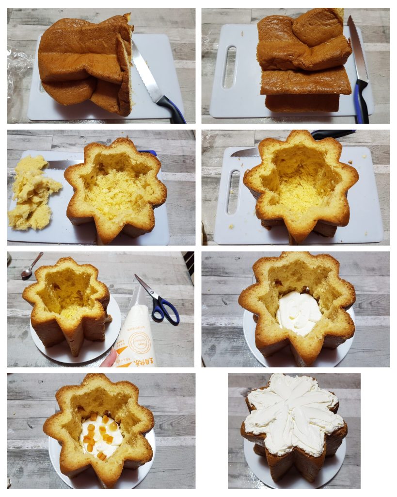 Stappen voor de gevulde pandoro met mascarponemousse, room en gekonfijte sinaasappel