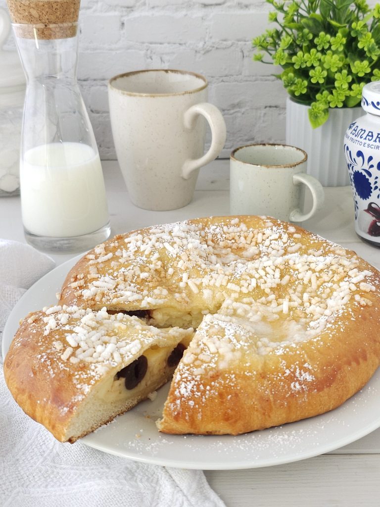 Hallo vrienden, vandaag stel ik je deze heerlijke ‘polacca aversana’ voor, een typisch gebak uit Aversa in de provincie Caserta en dus uit Campania. Een gebak bestaande uit twee schijven briochedeeg met een vulling van banketbakkersroom en zwarte kersen. Hieronder vind je het recept..