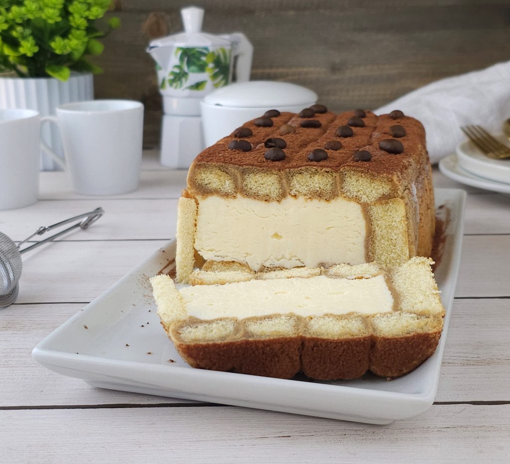Haal de ijstaart uit de vriezer, haal hem voorzichtig uit de vorm en leg hem op een serveerschaal. Verwijder ook de folie en decoreer de bovenkant met een laagje cacao poeder. Laat de tiramisu-ijstaart ongeveer tien minuten op kamertemperatuur staan voordat je hem serveert. Ik hoop dat jullie mijn laatste recept lekker vinden, tot de volgende keer vrienden.