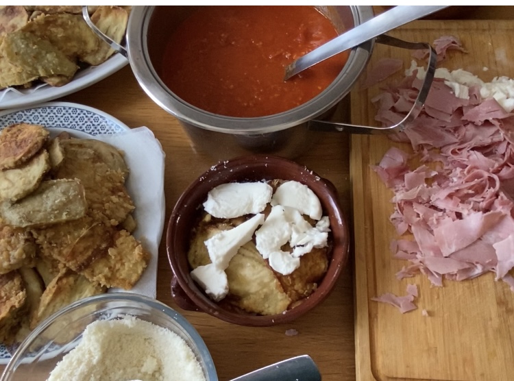 Aubergine Parmigiana eenpersoonsporties in aardewerk – heteluchtfriteuse