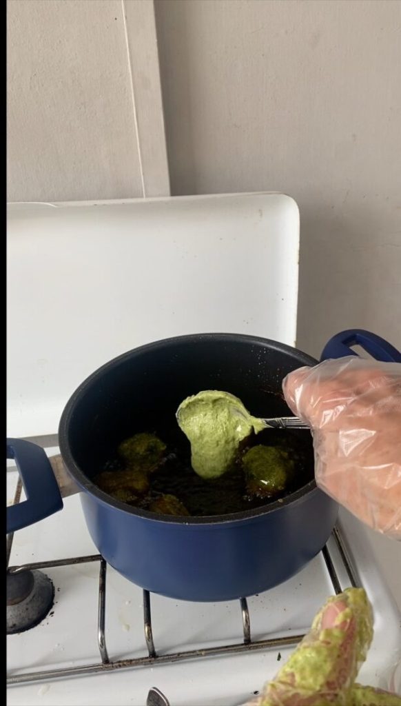 Als het klaar is, vorm dan kleine balletjes en frituur ze in overvloedige hete olie tot ze goudbruin zijn.