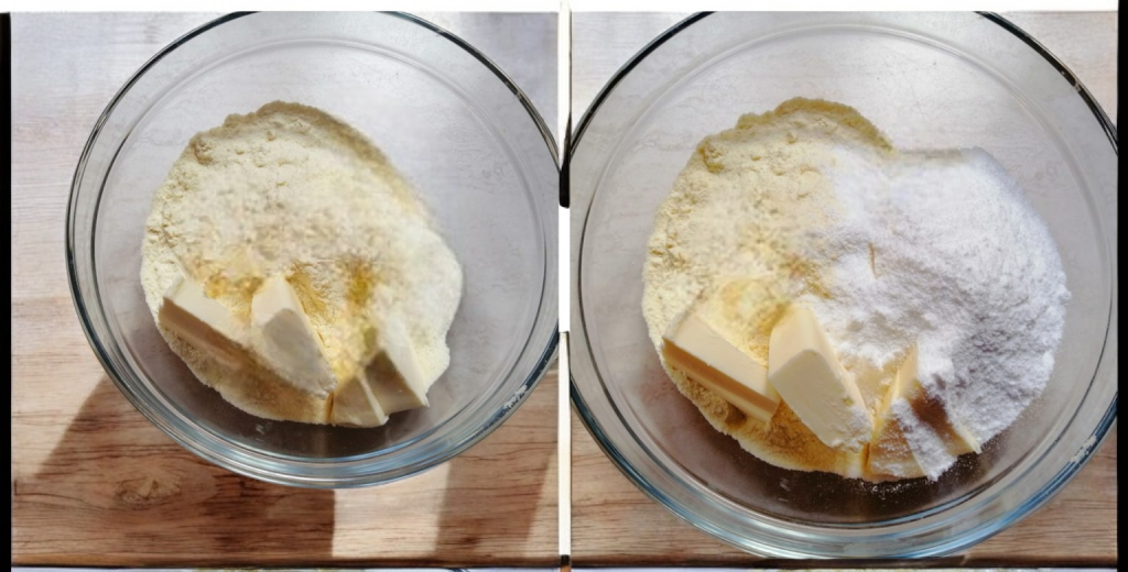 • Bereiding: Begin met het mengen van het griesmeel, de suiker en de boter in een kom. Werk het mengsel met je handen tot je een zanderige textuur hebt. Voeg het ei en het zout toe en kneed snel om te voorkomen dat het deeg te warm wordt. Het is belangrijk om het deeg niet te veel te bewerken om de brosheid te behouden.