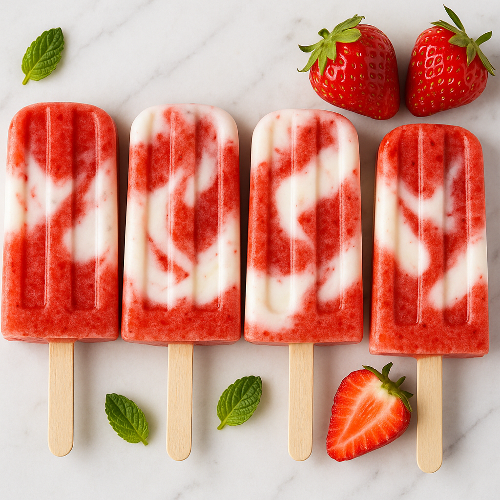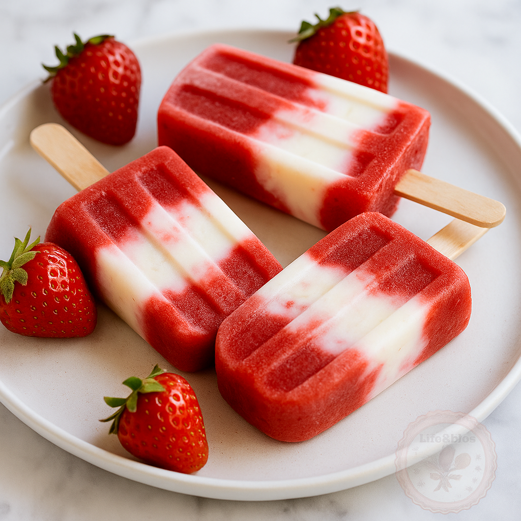 Wanneer ik ze maak, is het mooiste moment altijd het einde: ze uit de vriezer halen, even wachten en die aardbeiengeur ruiken die weer opkomt. Ja, want hoewel ze eenvoudige ijsjes lijken, smaken ze voor mij naar de zomer van mijn jeugd: plakkerige handen, rondrennen in de tuin en het ijsje dat te snel smolt.