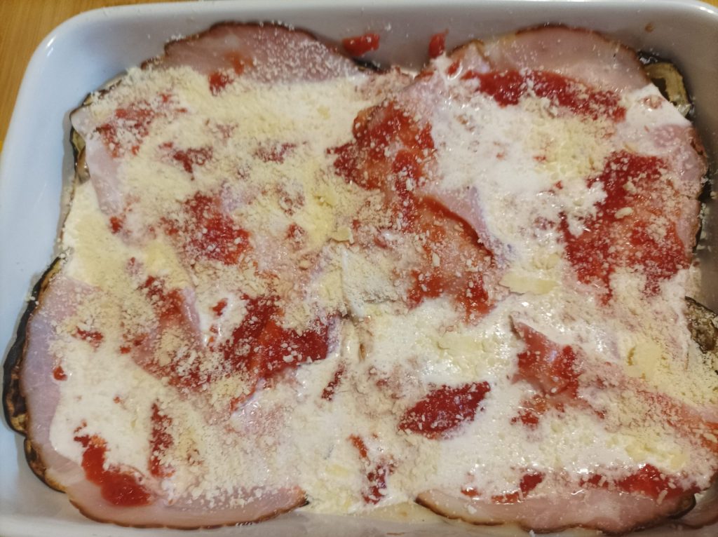 Aubergine ovenschotel, een heerlijk voorgerecht of hoofdgerecht. Het is heel eenvoudig te maken en is een alternatief voor de klassieke parmigiana. Zonder frituren en zonder sausbereiding, maar gewoon gegrilde aubergine, gekruid met tomatenpulp, verse room, smeltkaas en gekookte ham. Een snelle optie voor wie de hele dag werkt en iets lekkers wil bereiden voor het avondeten, de aubergines kunnen zelfs de dag ervoor worden voorbereid om snel te kruiden en in 25 minuten te koken. Ik ben ervan overtuigd dat je het vaak zult maken… hieronder vind je andere heerlijke ideeën om aubergine te bereiden. Dan is het nu tijd om het te proberen!!!