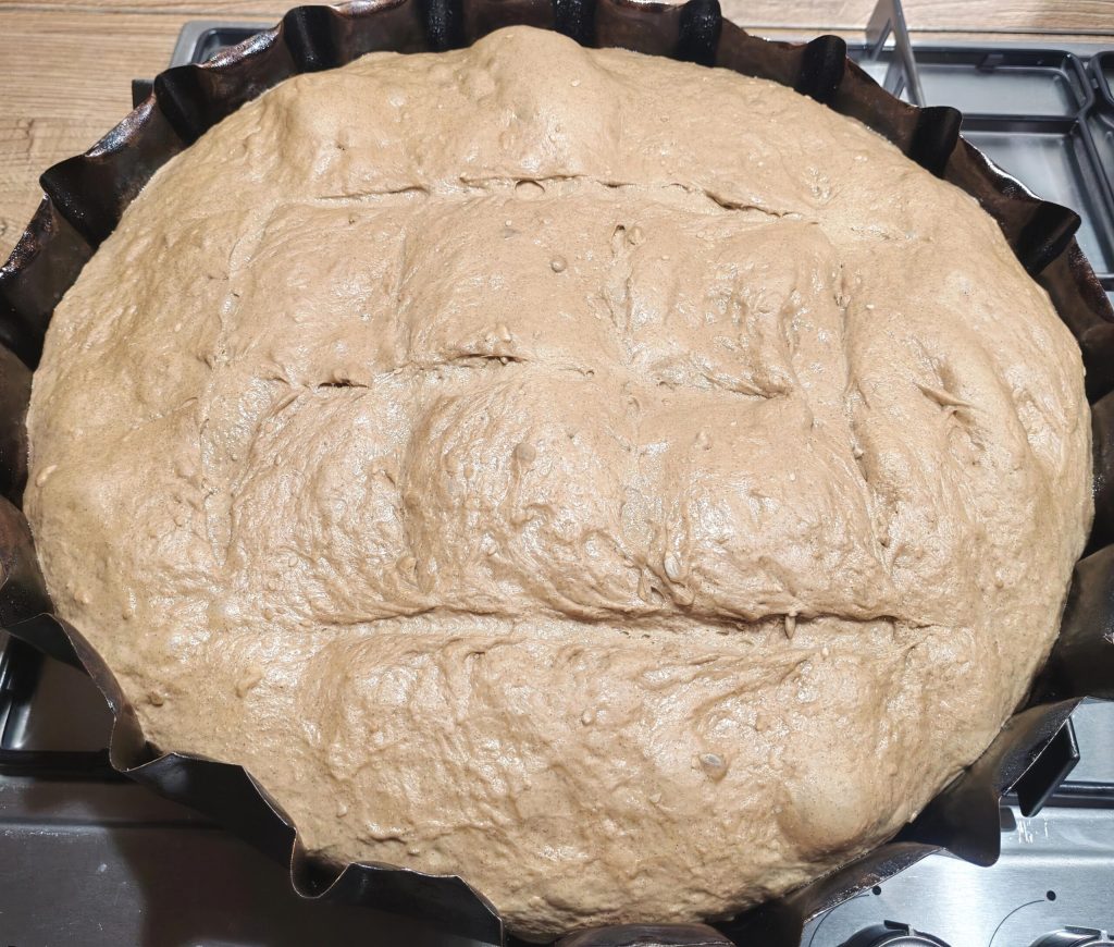 Het brood met 7 granen is een gezonde keuze, maar ook het genoegen om te genieten van een rustiek brood zoals vroeger, knapperig van buiten en zacht van binnen. De mengsels van verschillende meelsoorten geven een heerlijke geur, en de sesam- en zonnebloempitten maken het geheel nog specialer. Met dit brood kun je verschillende gerechten begeleiden of het gebruiken voor een gezonde en eerlijke ontbijt. Niets is bevredigender dan thuis brood bakken. Voor dit recept heb je alleen het al gemengde meel nodig, zoals degene die ik heb gekozen, water, zout, gist en, daarnaast heb ik een beetje mout toegevoegd om meer kleur en knapperigheid te geven. Je kunt de vorm kiezen die je verkiest, zoals tarallo, stokken, ciabatta, broodjes, enz. Ik heb ervoor gekozen om een grote focaccia te maken, gebakken in een ijzeren bakvorm, maar elke ovenschaal is prima. Probeer het maar!!