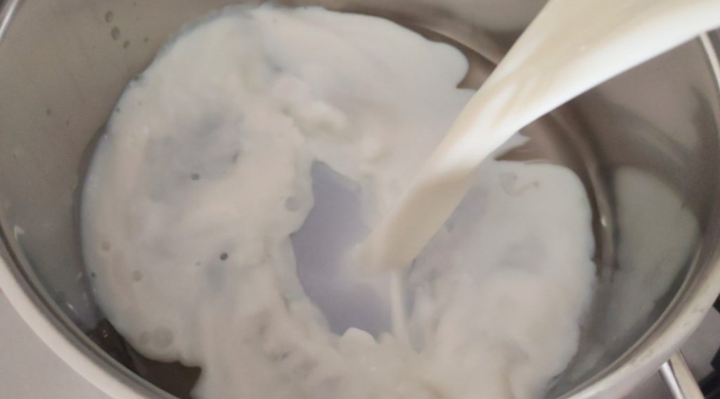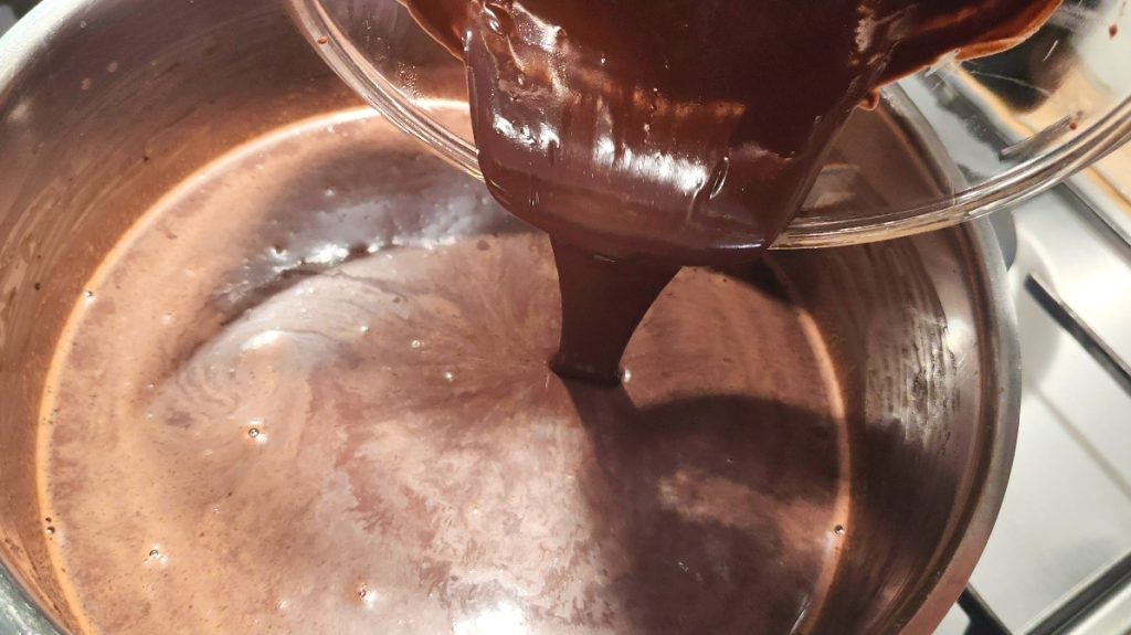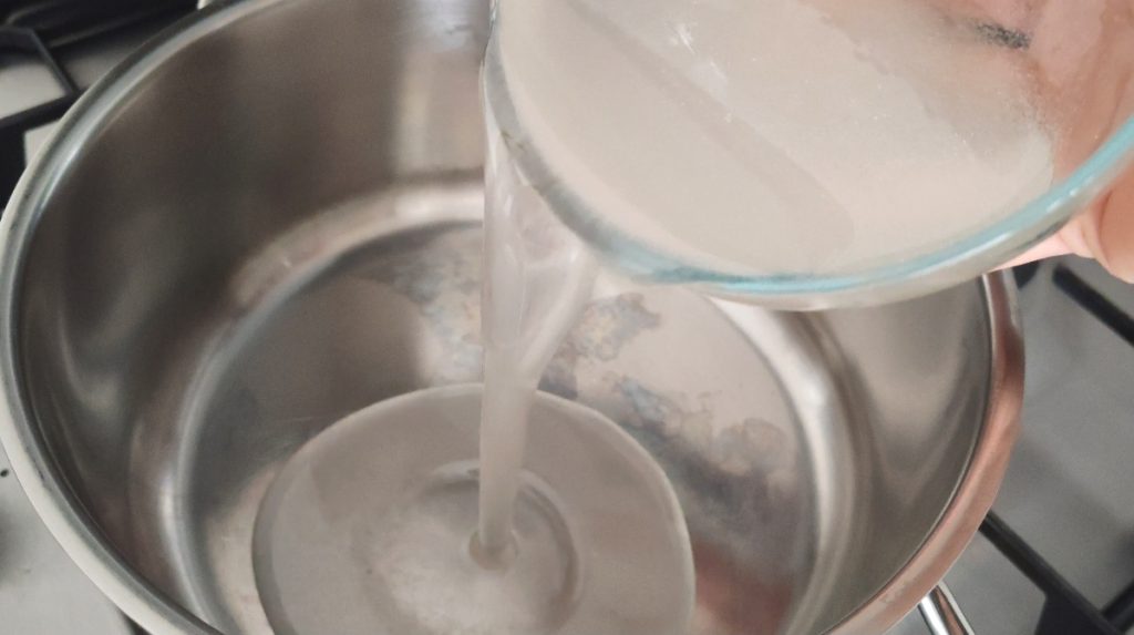 • Wanneer de siroop volledig is afgekoeld, plaats het in een steelpan en begin koud toe te voegen