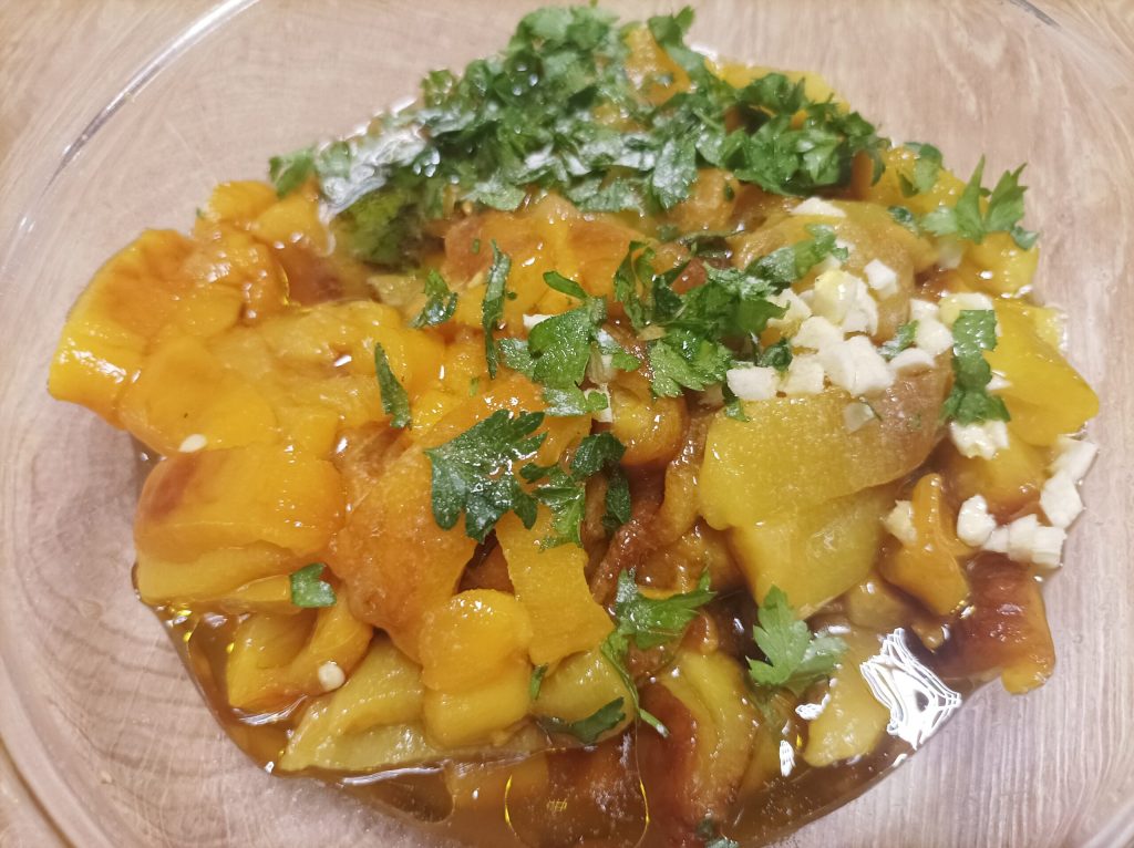 Snijd ze in reepjes, plaats ze in een container en breng op smaak met olie, zout, gesneden knoflook, gehakte peterselie en kappertjes.