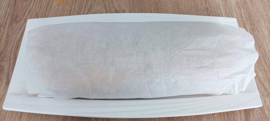 Wikkel het in bakpapier en laat minimaal 30 minuten in de koelkast rusten.
