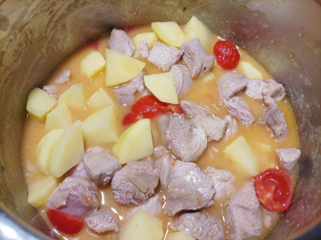 De kalkoenstoofpot met aardappelen is klaar. Eet smakelijk!
