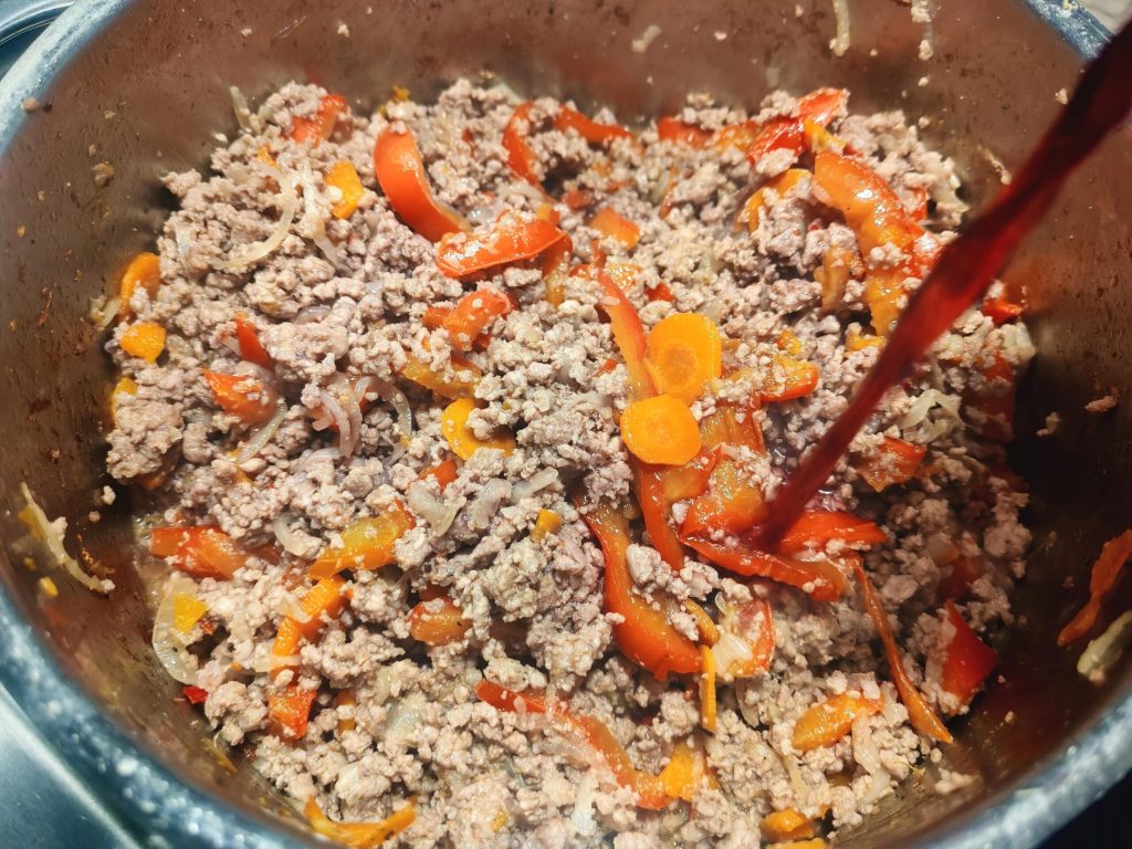 Voeg vervolgens het vlees toe en zet het vuur iets hoger.