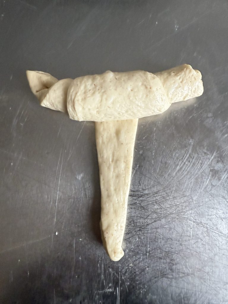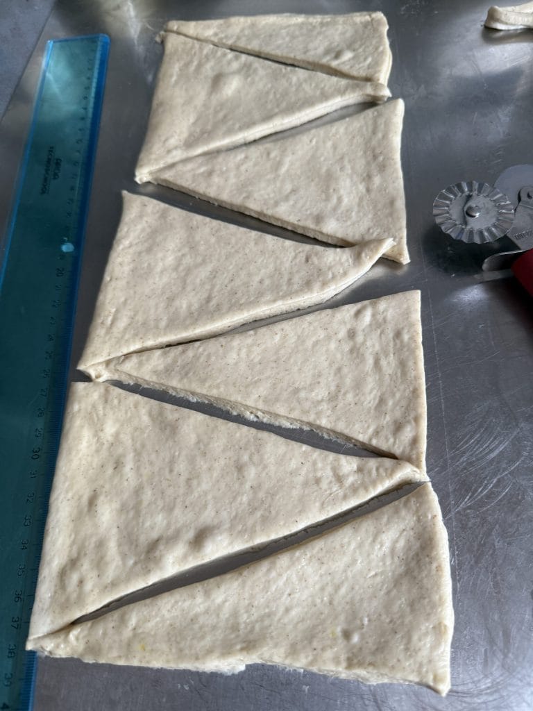 De lichte broodcroissant met natuurlijke gist is klaar! Herhaal het proces voor het resterende deeg.