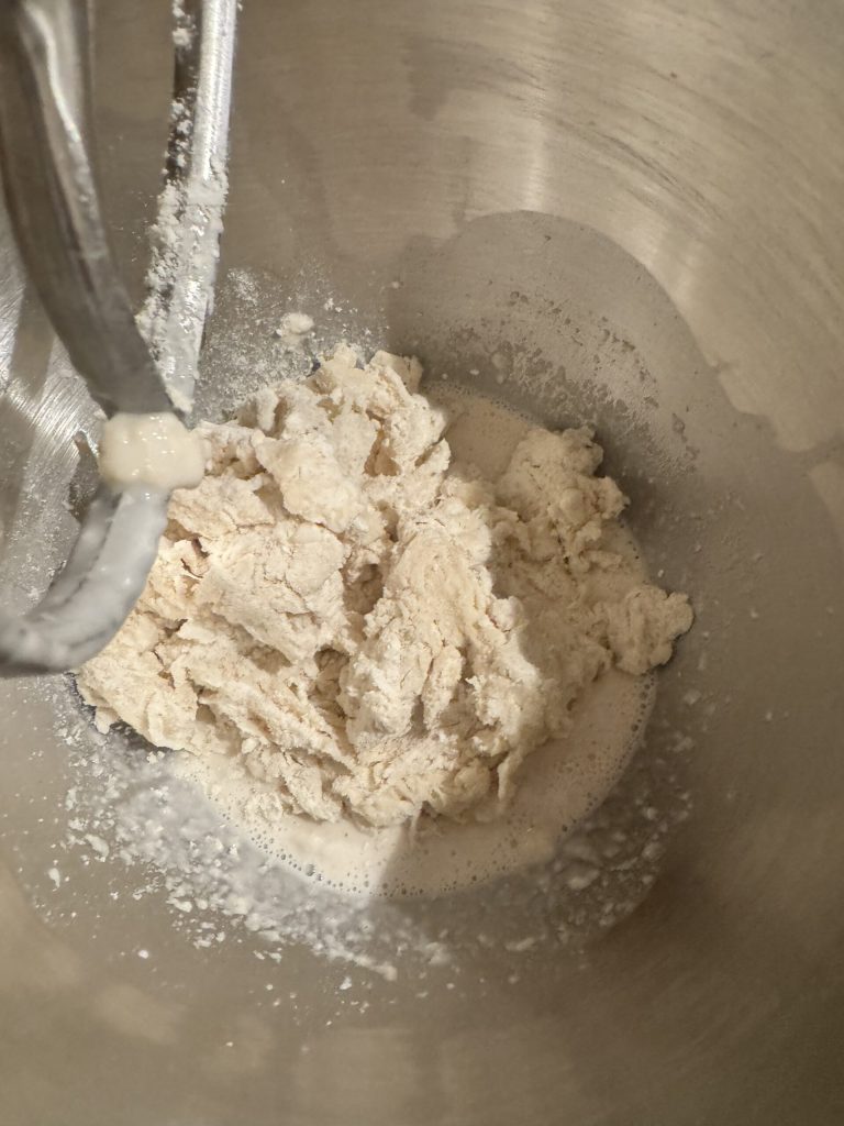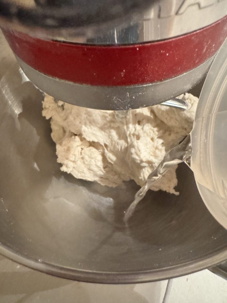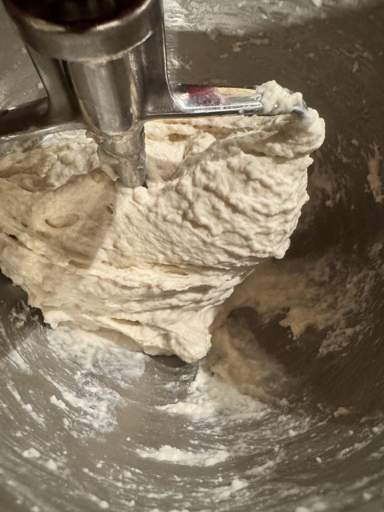 Zodra het deeg begint de randen van de mixer schoon te maken, verwijder de vlinderklopper en plaats de haak.