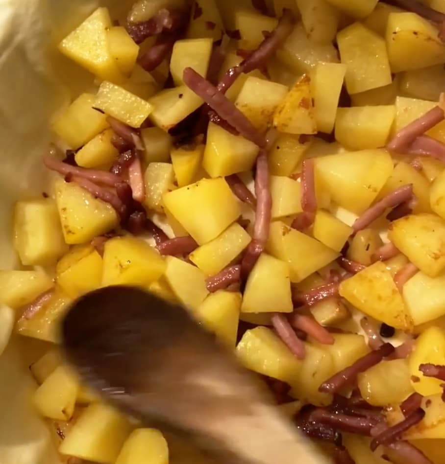 Het perfecte recept om je koelkast leeg te maken? De hartige taart. Hier in mijn versie van hartige taart met aardappelen en spek, super smaakvol, is het zo veelzijdig dat je het met alles kunt vullen wat je in de koelkast hebt.