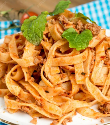Als we al een bord tagliatelle met saus hebben (ook Bolognese), kunnen we dit deel overslaan: